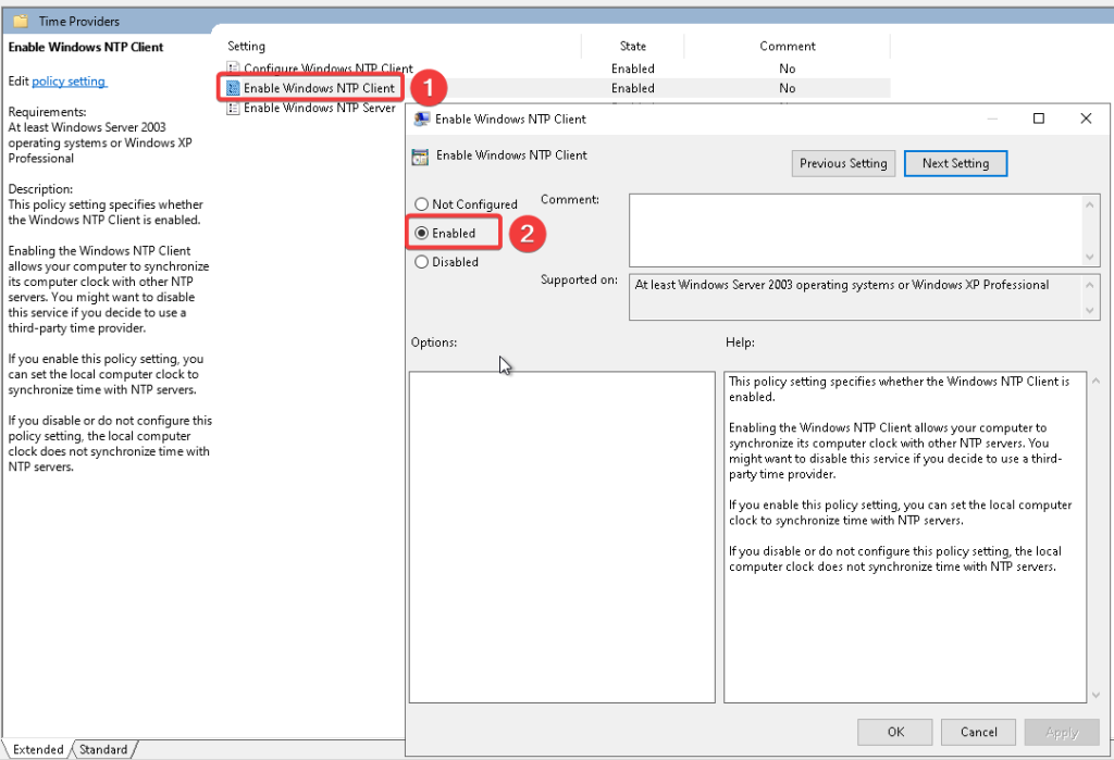 ** If needed, enable “Enable Windows NTP Server”. Keep in mind that all domain clients automatically sync to the PDC Emulator so you might not need this setting.
