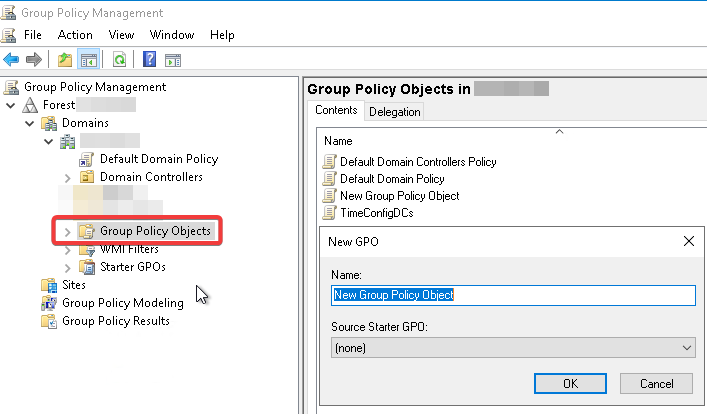 • Create a New GPO in the GPO Objects container – Edit – Name it as you like